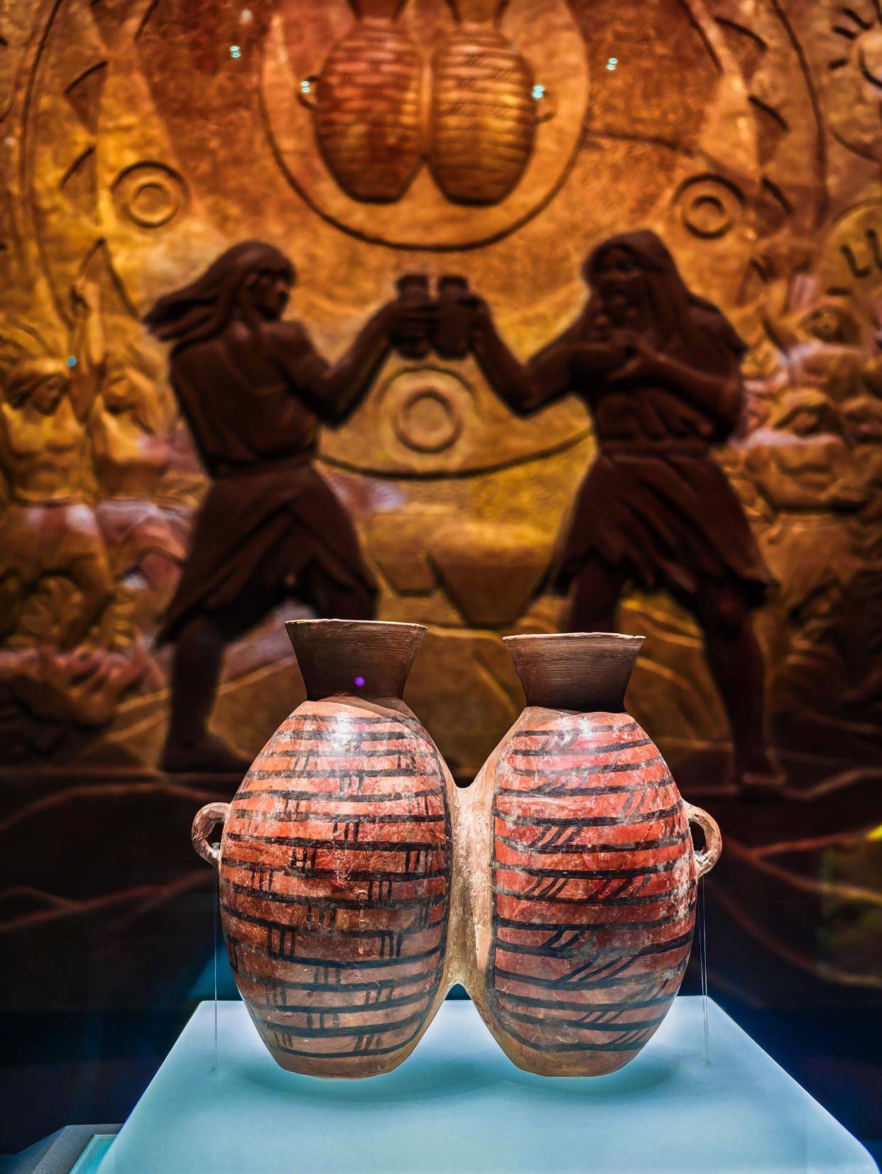 大河村的魅力同样凝结于那些精美的彩陶之中。彩陶双连壶作为史前艺术的典范,两壶并列、腹部相通,被视为和平、友好与相亲的象征。更令人惊叹的是,遗址出土的彩陶片上装饰有太阳纹、日晕纹、星座纹等天象图案,是我国迄今已知最早的天文学实物资料,见证着先民对宇宙的早期探索。